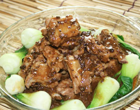 永川豉汁排骨:'1.将猪扦排宰成2厘米见方的丁;2.豆豉剁细;3.将扦排、豆豉、姜末、料酒、酱油、白糖、胡椒粉、湿淀粉等共纳一盒子拌匀,入圆笼,蒸至离骨;4.排骨上...    详细介绍
