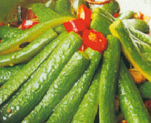 乳黄瓜是以嫩黄瓜为主料,配以黄酒、酱油、味精和甜面酱等辅料,经数次腌渍制成。采摘时花犹未谢,小刺布满全身,当天采摘,当天腌制,此时嫩瓜犹如哺乳期婴儿,故称乳黄瓜。乳黄瓜脆嫩爽口,香甜鲜美,营养丰富,乳黄瓜具有独特的风味,以脆嫩爽口,香甜鲜美,营养丰富而著称,被誉为“酱菜之宝”。