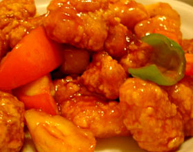 咕噜蜜肉:'1.猪肉切成3厘米*3厘米*0.5厘米的厚片,加盐2克、味精2克、鸡蛋、生粉10克,清水10克搅拌均匀,腌渍半小时后,蘸多量生粉,备用;菠萝切片;红辣椒、...    详细介绍