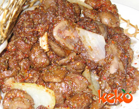3.炒勺置火上,加植物油烧至八成热,将切好的腰子投入油勺炸酥捞出,淋香油盛盘,撒椒盐而食。