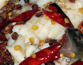 怪噜鱼:'1.将草鱼宰杀,去鳞、内脏及鳃洗净;2.将净草鱼去掉头、尾,剔下两扇鱼肉,片成相连的坡刀片,同鱼头、尾加入姜葱汁、胡椒粉、料酒、精盐拌匀腌入味,...    详细介绍