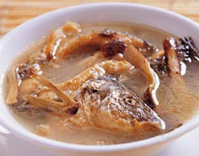 天麻补脑汤:'1.枸杞叶洗净,注入清水煮约二三小时留汤汁待用。2.鲤鱼去鳞、内脏洗净,抹上盐、酒。3.锅中油热,鲤鱼入锅中微炸捞起,放入炖锅中,加入药材及汤汁,... 详细介绍