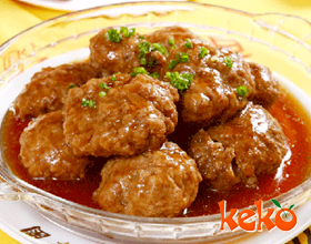 煎丸子:'1.将猪肉洗净剁成肉泥,加入蛋清、淀粉20克、酱油10克、精盐1克、味精1克搅匀。将水发玉兰片、水发元蘑均切成片。2.炒勺上火加豆油,将调好的馅挤成丸...    详细介绍