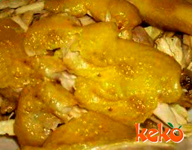 '1.先将沙姜粉,味精,盐放碗中拌匀,加入麻油及烧热的花生油调成稀糊。