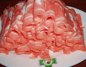 涮羊肉:'1.肉选净肉,放在-5℃的冷库中冷藏12 小时,待肉冻僵后,再行切片,切时将冰冻肉去掉边缘和肉头,片去云皮(即附在肉上的一层薄膜)、脆骨和未剔净的...    详细介绍