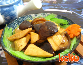冬菇炒塔菜:'1.选新鲜塔菜洗净,剥去老叶,一棵塔菜切成4-6片。水发冬菇洗净,去蒂,斜批成片。2.炒锅置火上,放入花生油50克烧热,下姜末、冬菇煸香,放入塔菜片...    详细介绍