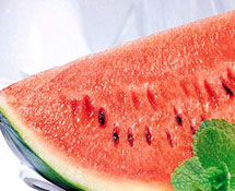 西瓜性寒,味甘,归心、胃、膀胱经;