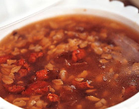 归脾麦片粥:'1.党参、黄芪、当归、枣仁、甘草、丹参、桂枝置清水内浸1小时;2.捞出全部中药,加水1000毫升,煎汁去渣;3.麦片、桂圆肉、枣,加入药汁,共煮成粥。...