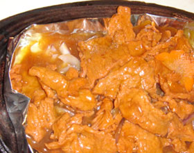 铁板黑椒牛柳:'1.将牛柳(牛里脊肉)去筋后切成长5 厘米、厚4 毫米的片,进行腌制;2.腌制入味的牛肉片加入食粉3克,生抽6克、味精5克、黄酒5克、清水75毫升、淀粉1...    详细介绍